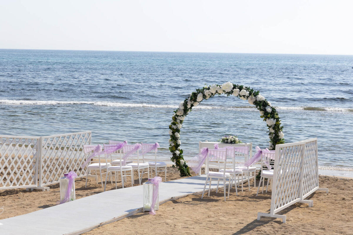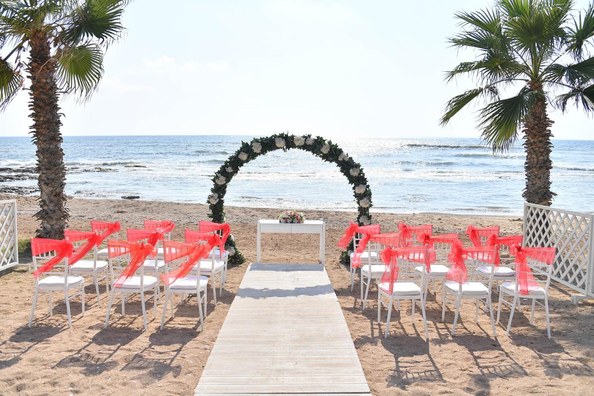 The Kefalos Beach Weddings Arch Venue offers a breathtaking and intimate setting for your special day. Nestled only a skip, a jump and a hop away from the crashing waves of the sea, you and your loved ones will be surrounded by the beauty of nature as you exchange vows. This venue is designed to accommodate intimate ceremonies, with a capacity of 2 to 50 guests, making it the ideal location for small beach weddings or renewal of vows. The venue is semi-private, offering a serene escape from the hustle and bustle of daily life. The setup includes elegant chairs, adorned with matching chair covers and sashes in the colour of your choice, as well as enchanting decorations that add to the already breathtaking setting. You can walk down the aisle on a plush red or white carpet, surrounded by the tranquil sounds of the sea and the excitement of your loved ones. For added convenience, the venue is equipped with electricity and a music system, allowing you to play your favourite songs and create the perfect soundtrack for your special day. If you are in need of refreshments, the nearest bar and toilet facilities are conveniently located at the pool bar. To make your day even more memorable, the venue offers a champagne toast and cake cutting, allowing you to celebrate your love and commitment with your nearest and dearest. The Kefalos Beach Weddings Arch Venue is a dream come true for those seeking an intimate and romantic beach wedding. Exchange vows in a setting of natural beauty and create memories that will last a lifetime.